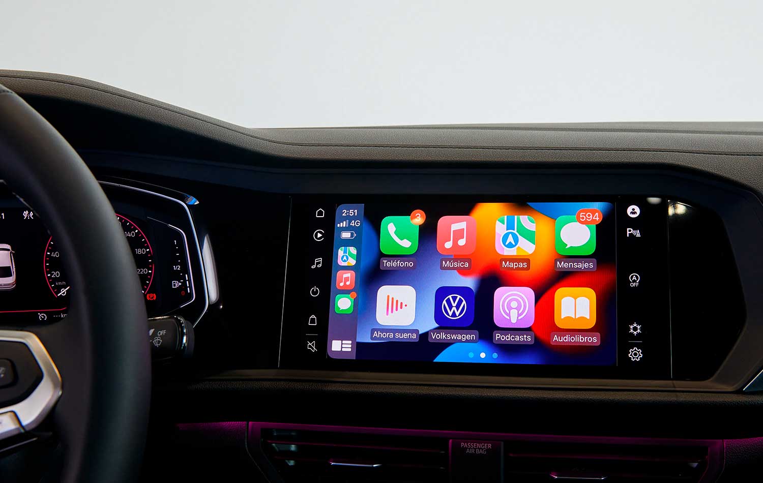 - Tecnología: Pantalla VW Play de 10″ y tablero digital.